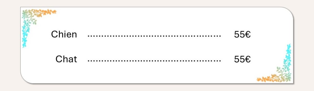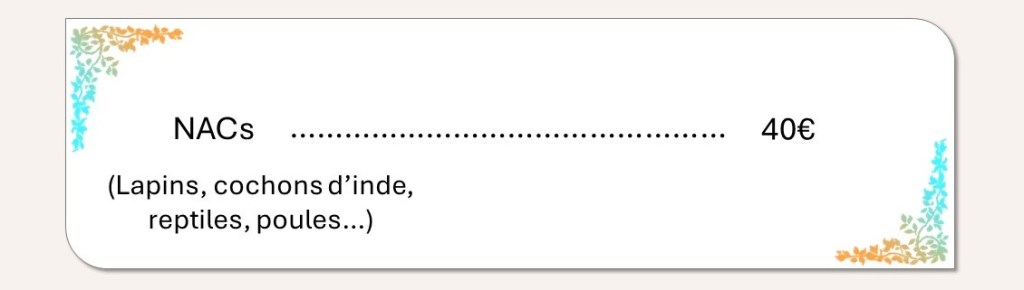 Tarifs NACs (Nouveaux Animaux de Compagnie)